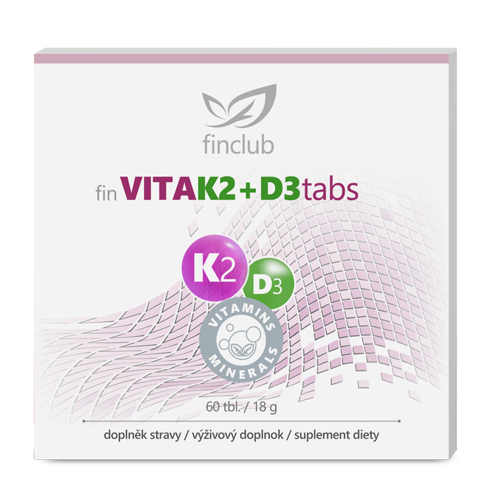 Food supplement fin VitaK2 + D3tabs NEW contains a combination of vitamin K2 (menaquinone) and D3 (cholecalciferol). Vitamin K2 MenaQ7 ™ is obtained from Japanese fermented soy cheese natto.